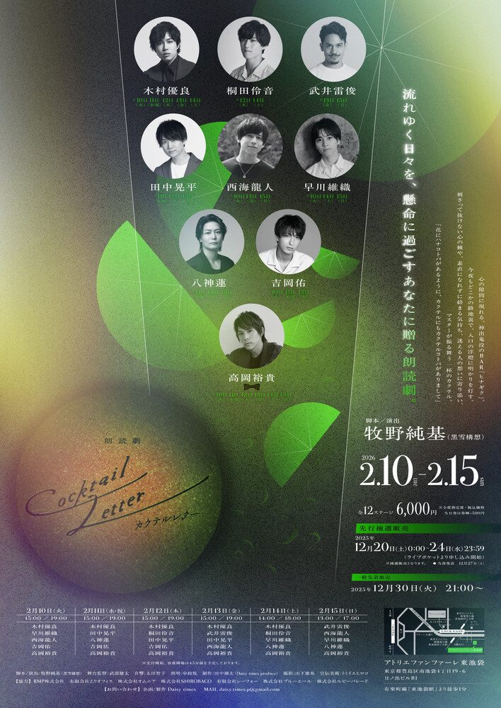 いつも早川維織の応援頂きまして有難うございます。この度早川が朗読劇「CocktailLetter」の出演が決定いたしました。